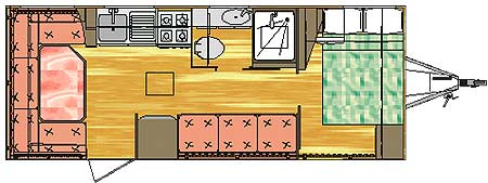 escamoteável para formação de uma cama de casal. COZINHA: Com despensa embutida deslizante e suporte para televisão, pia de aço inox, gabinete da pia com duas portas e uma prateleira, com gaveta para talheres e tábua de apoio, armário com quatro portas e uma prateleira laminados em fórmica na cor ovo brilhante com acabamento em madeira de cerejeira, fogão quatro bocas com forno e mesa em inox com acendimento automático com armário inferior, depurador de ar com iluminação, geladeira elétrica duplex com capacidade para 330 litros e armário superior, cortina divisória para o BELICHE, cama superior do beliche com grade e dobrável para formação de sofá na parte de baixo, cama inferior do beliche com três gavetões. QUARTO DE CASAL: Com porta divisória de correr, penteadeira com espelho e gaveta, criado-mudo com três gavetas, cama de casal desencostada em uma lateral e peseira, com baú, armários aéreos, espelho panorâmico, suporte para televisão. DIVERSOS: Espumas de densidade 40 revestidas com tecido de ótima qualidade. Uma janela de acrílico fumê pequena no banheiro, duas janela de acrílico fumê pequena no beliche, uma janela de acrílico média na cozinha, uma janela de acrílico fumê grande na parte traseira, duas janelas de acrílico fumê na lateral da sala e do quarto todas as janelas têm abertura escamoteavél feita através de dois braços de sustentação em latão cromados com ângulo de abertura de 45° a 90° e fechos. Ar condicionado quente e frio de 7.500 BTUS, localizado no quarto de casal proporcionando refrigeração total dos ambientes. Micro system com CD e duplo deck, seis auto-falantes individuais, sendo dois para a sala, dois para o quarto de casal e dois para o lado externo do trailer. Acomodação para seis a oito pessoas. |