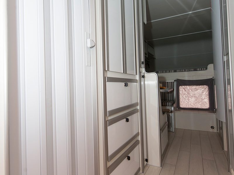 – Armários com braços articulados a gás e travas automáticas, para evitar serem abertos em trânsito;