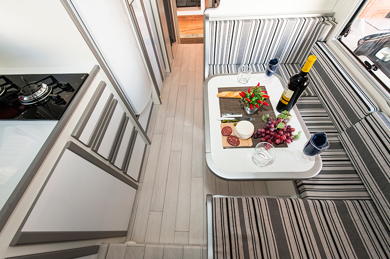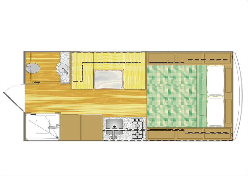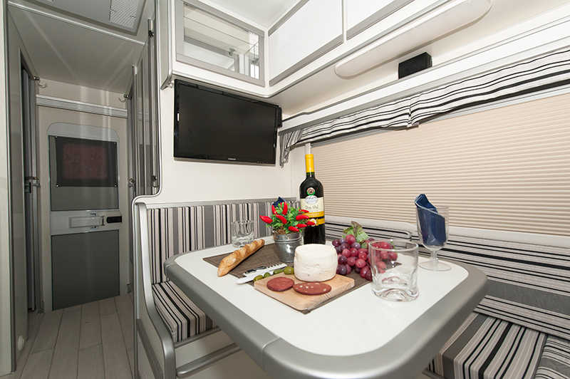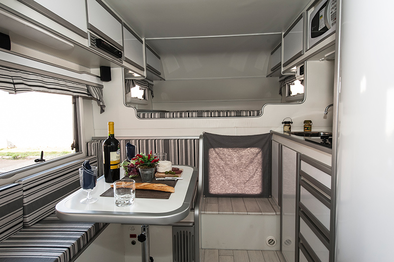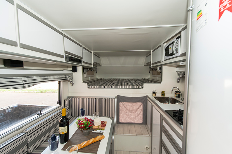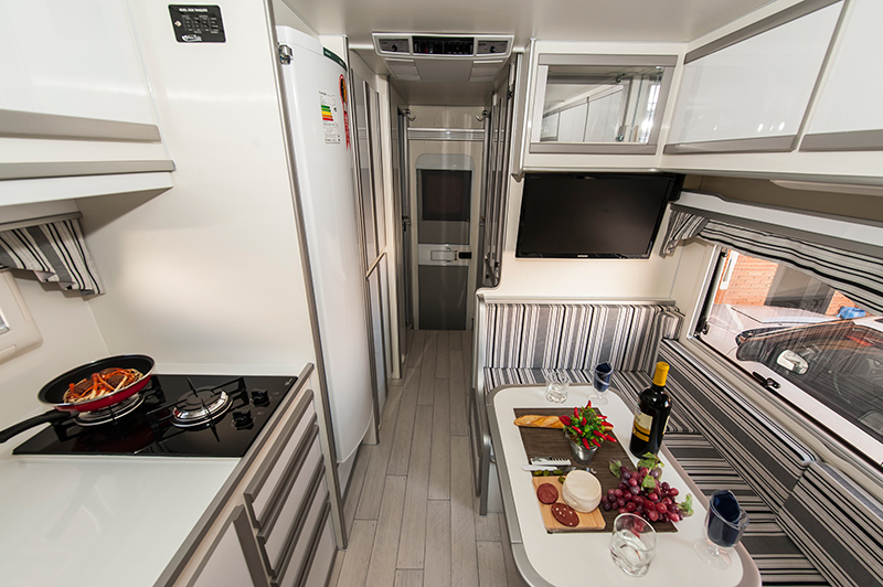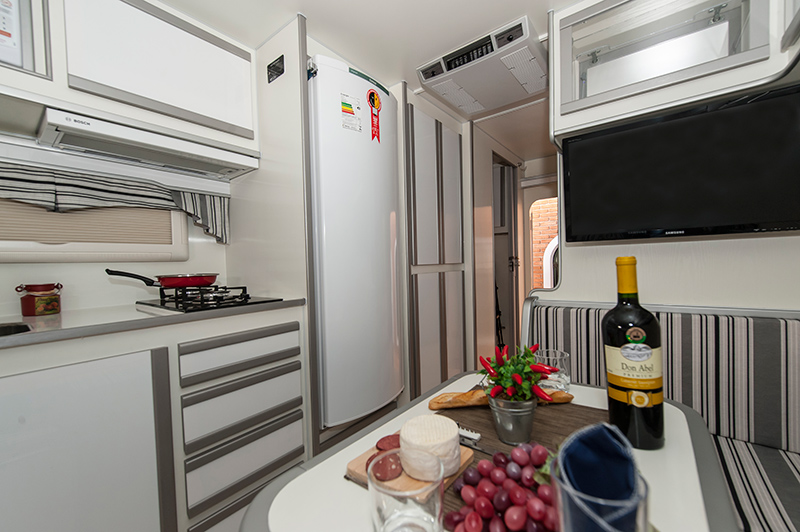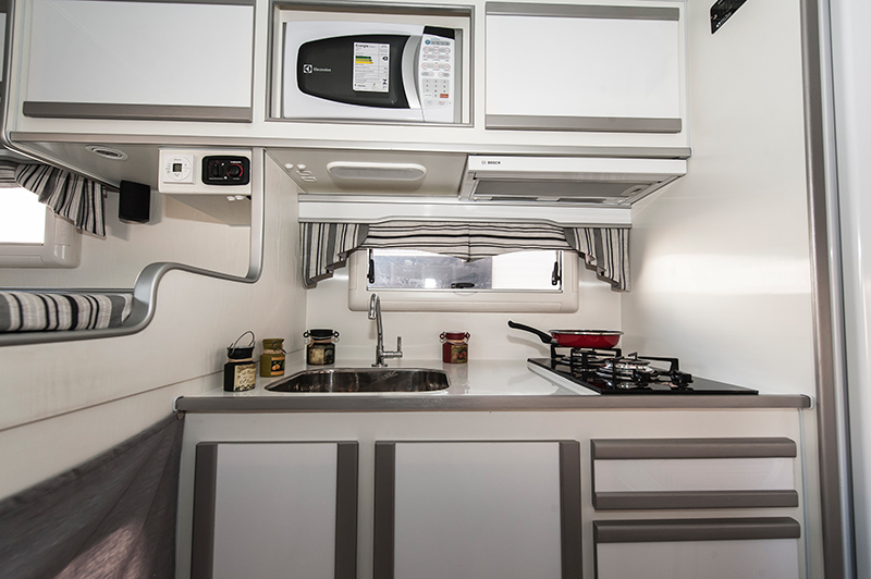 – Tomadas de energia, distribuídas em pontos estratégicos, com entrada USB em todos os cômodos do Camper.