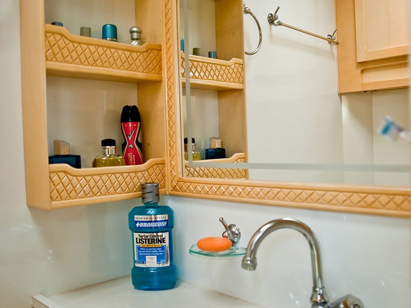 – Espelho na principal parede da área do toalete;