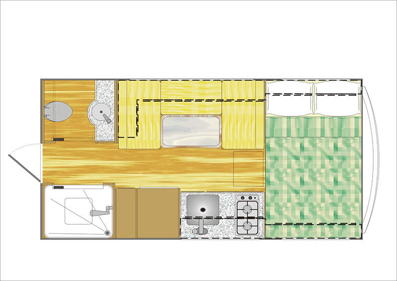 – Assoalho em compensado naval revestido em decorflex de alta resistência;