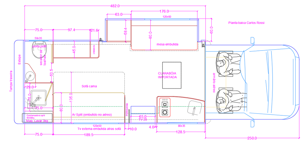 – Provisão para Iluminação interna no armário sob a pia e guarda roupa;